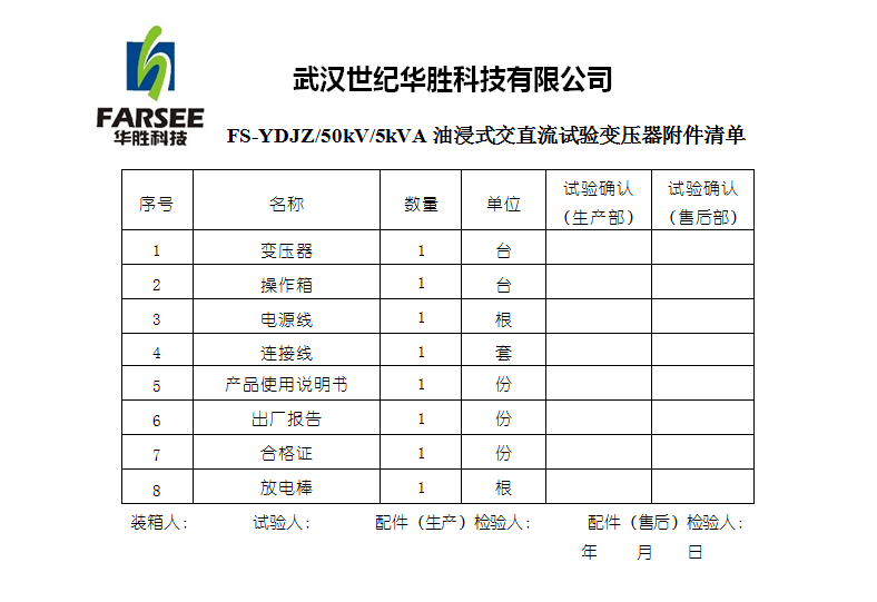 ◆ FS系列油浸/干式/氣體試驗變壓器技術(shù)參數(shù)