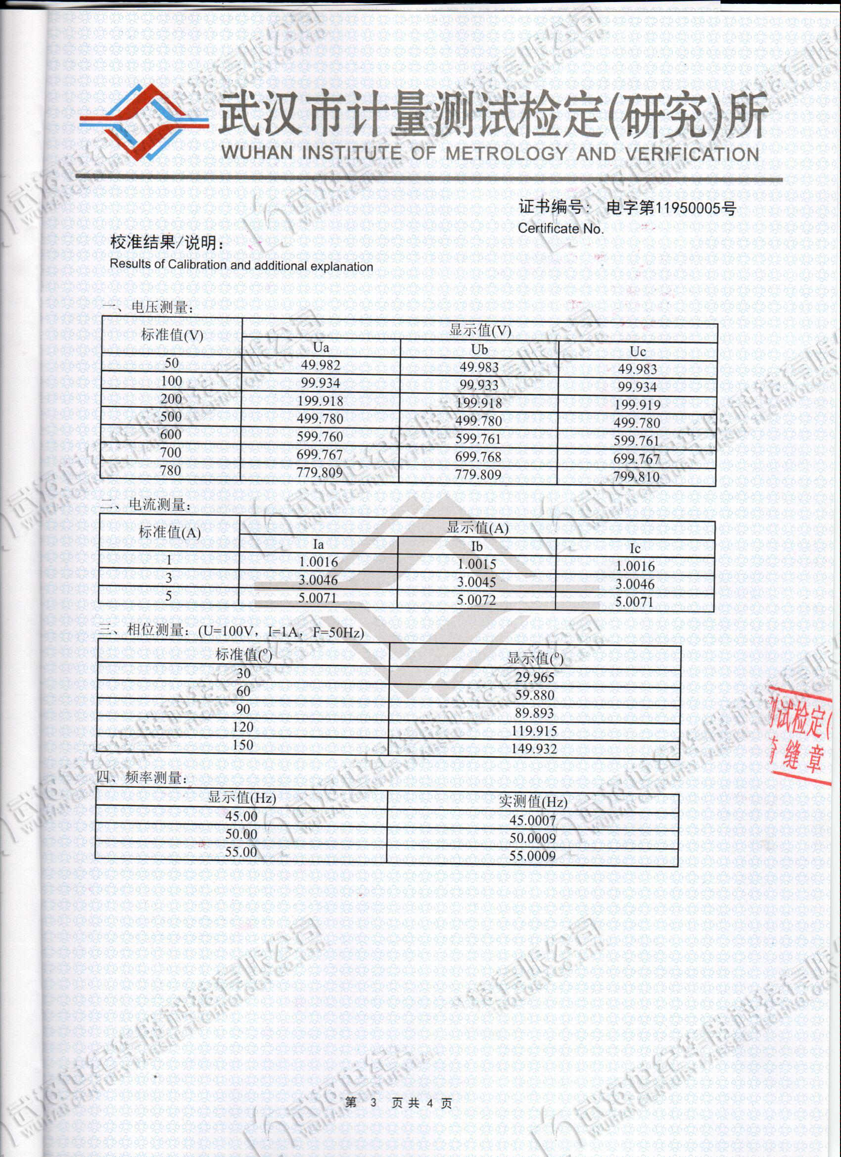 基波電壓和電流之間相位差的測量誤差:≤0.2°