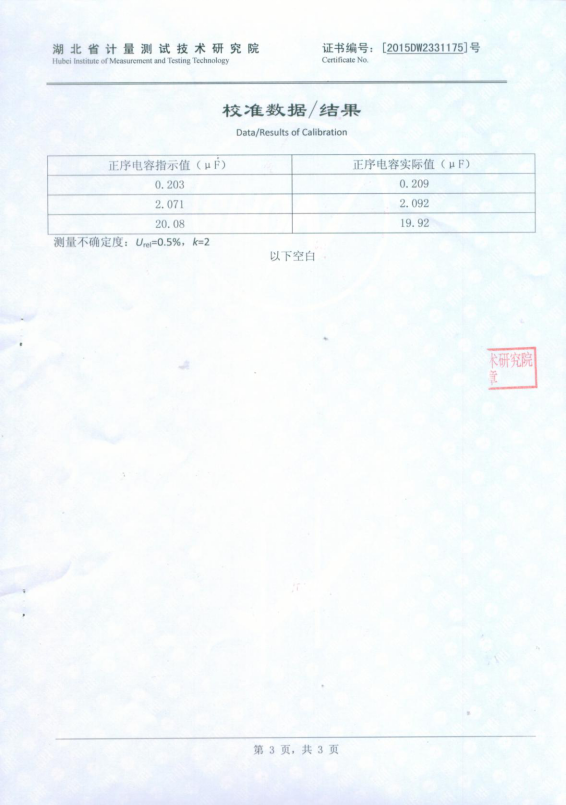 電容: ?????≥1μF時(shí),±1%讀數(shù)±0.01μF; ????????????<1μF時(shí),±2%讀數(shù)±0.01μF; |